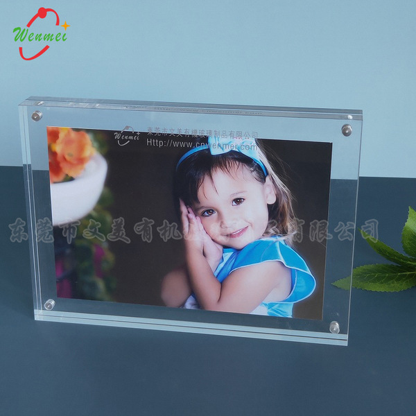 Free standing & Double-Sided Display frameless acrylic picture frame. You can easily display 2 different photos of both sides. This frame can stand on desktop horizontally or vertically, but not hang, perfect for people to decorate their home, office or studio.